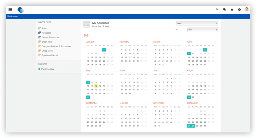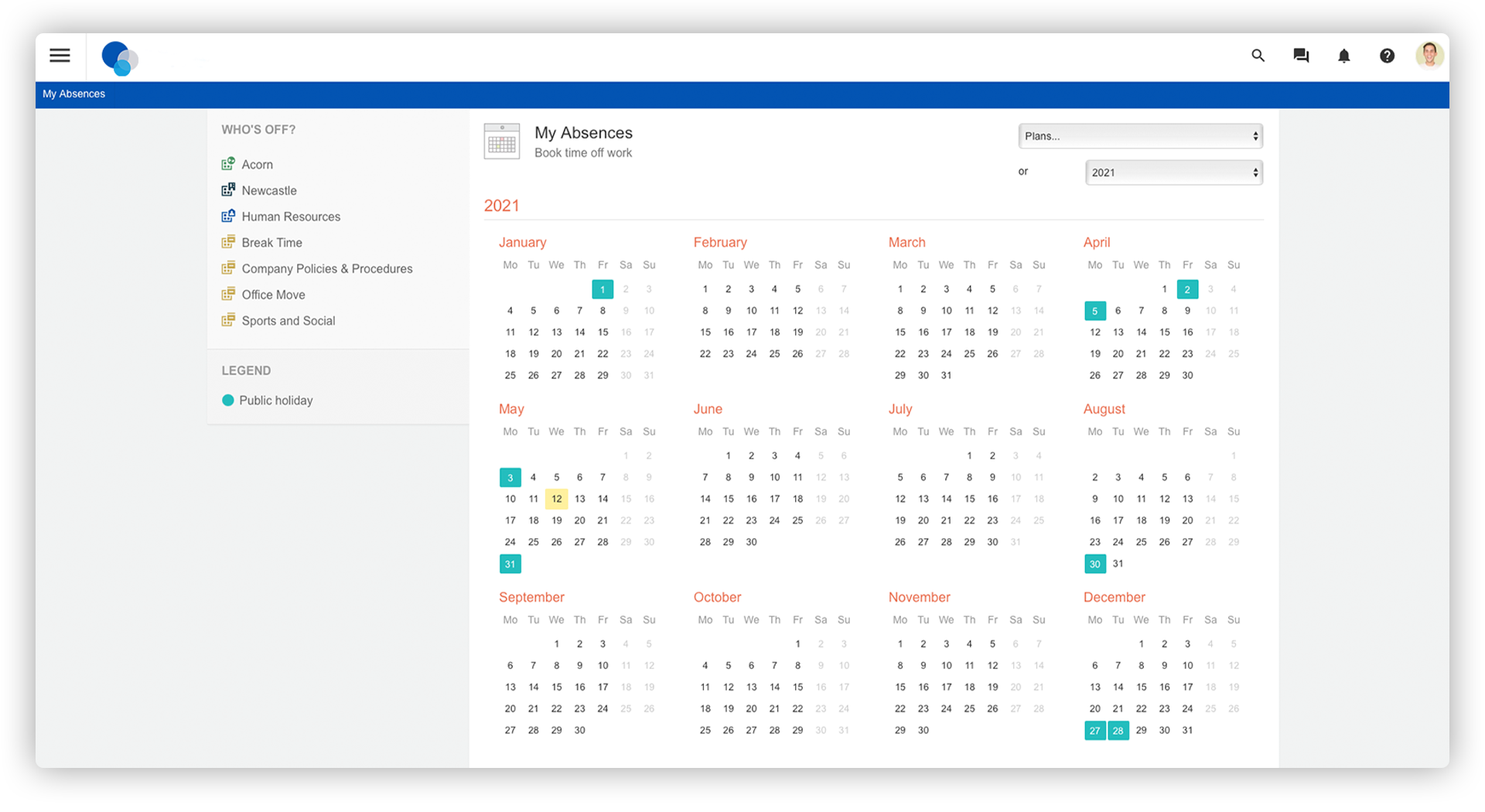 Holidays feature allows employees to book holidays easily in one single place, affording employees full transparency as to when their colleagues have holidays booked in. This feature increases employee productivity across the company as it gets a simple task done quicker.