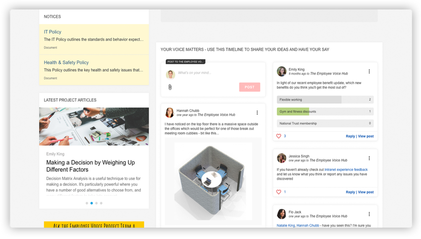 This feature allows users to get the help they need instantly. Knowledge management provides employees with a wealth of information and support so that you can get the most out of your intranet solution. From FAQ's to how-to guides and walk-through videos, Knowledge Base is ideal for new starters and remote workers.