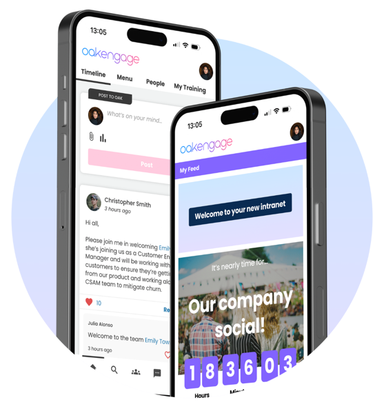 Here at Oak Engage, we combine all the intranet features that employees love to create an engaged, thriving innovative workspace solution to suit your company needs. Choosing the best company intranet for your requirements can be daunting, but at Oak, we’ll support you every step of the way. You'll receive help and guidance from our experts right from the beginning, creating an intranet to suit your needs and implementing it for success. Plus, once everything is up and running, we run regular ‘Power Hours’ which are free for customers, showcasing new features and helping you to make the most of every feature of your intranet for maximum impact.