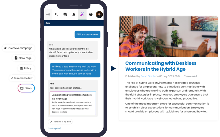 AI intranet: An AI-powered intranet brings significant benefits to corporate communication by leveraging artificial intelligence. It enables personalised communication by analysing employee data and delivering targeted messages based on individual preferences. This personalisation enhances engagement and relevance in communication. Additionally, AI automation streamlines communication processes, saving time and increasing efficiency. Tasks like document categorisation and answering common queries can be automated, freeing up employees for more strategic work. AI-powered analytics provide valuable insights into communication effectiveness, allowing organisations to make data-driven decisions and continuously improve their communication strategies. Overall, an AI intranet enhances engagement, efficiency and effectiveness in corporate communication.