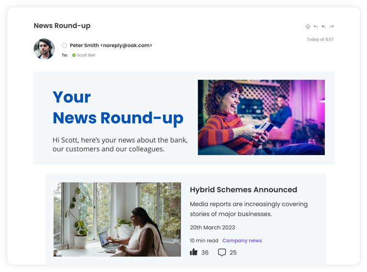 With the advent of technology around the 21st century, communicating with employees became a little bit easier and much more prominent. As with every technological advancement comes an element of commercialisation. Corporate communication is no different. Intranets for corporate communication were rolled out to align businesses and maintain a constant stream of communication with employees. Tools for corporate communication have evolved into complex and sophisticated software. Recent developments like AI promises internal communications a much more definitive and personalised future compared to their traditional counterparts. In fact, AI intranets offer a range of features that enhance internal communication and collaboration. After all, their inherent design is one that has been created around the very need for communicating with the business. Although every intranet is different, for the most part they have been able to offer employees much improved communication capacities than ever before. We’ve based this list off just a few of Oak Engage’s many capabilities: