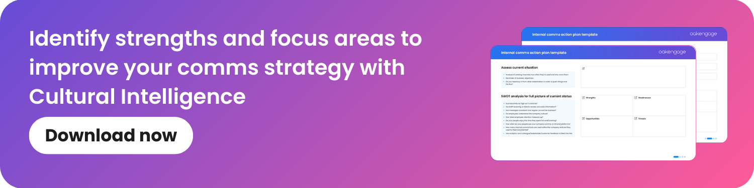Dig a little deeper into your existing processes to understand if you can apply any of the CQ values to the work that you’re doing today, using Oak's internal comms action plan.