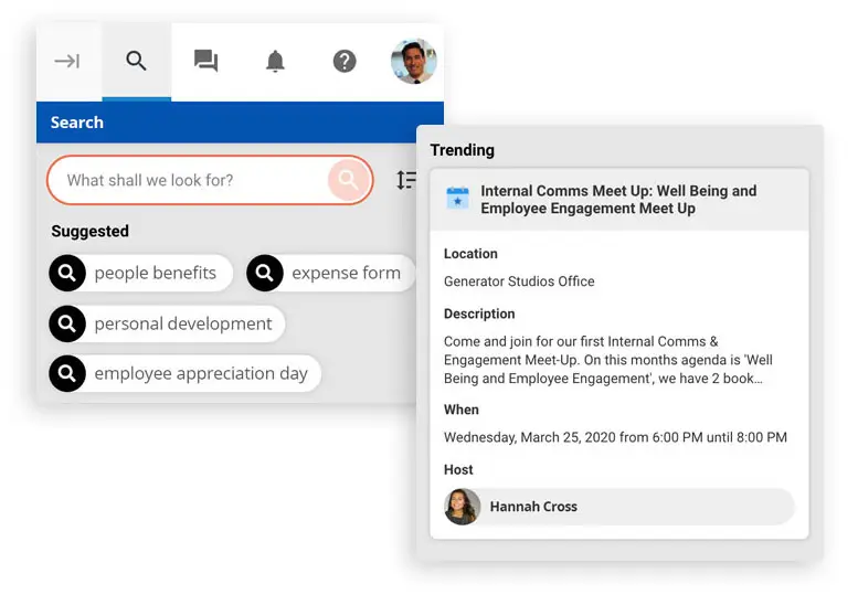 Continuous engagement: Adoption requires a dedicated strategy. Use the platform’s analytics to track top searches, popular content, and adoption rates. Adjust your content and communication strategy based on real-world usage data.