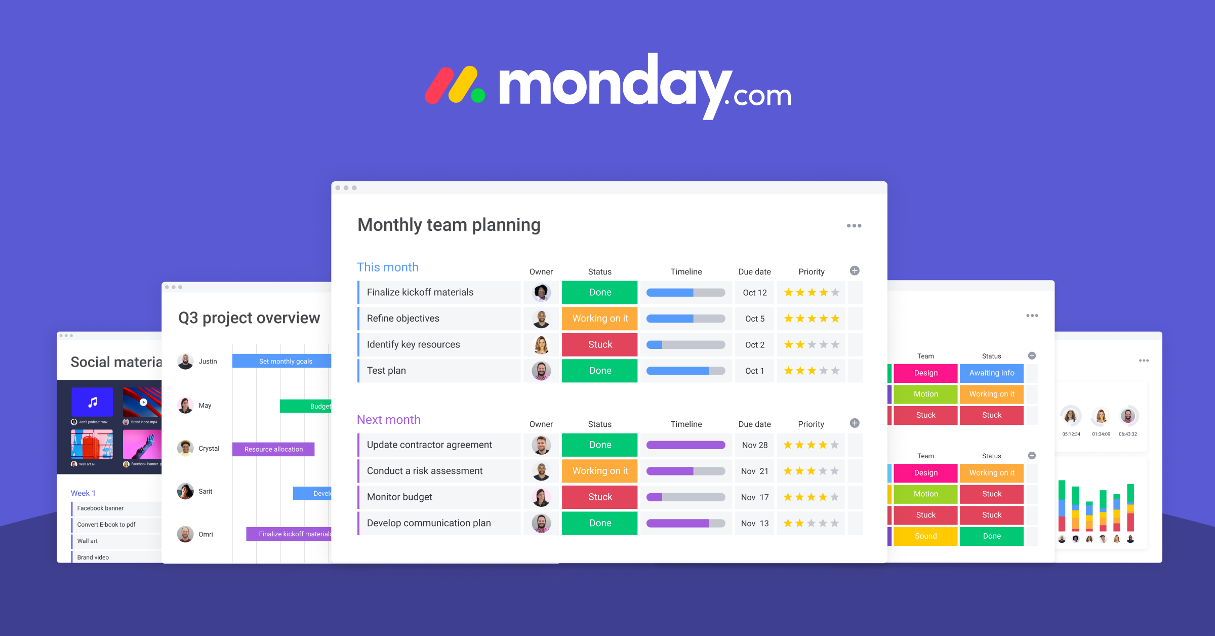 When working with an effective project collaboration tool like Monday.com, you can create a company-wide overview where each team member can see progress in a glance. This helps keep everyone aligned and on the same page.