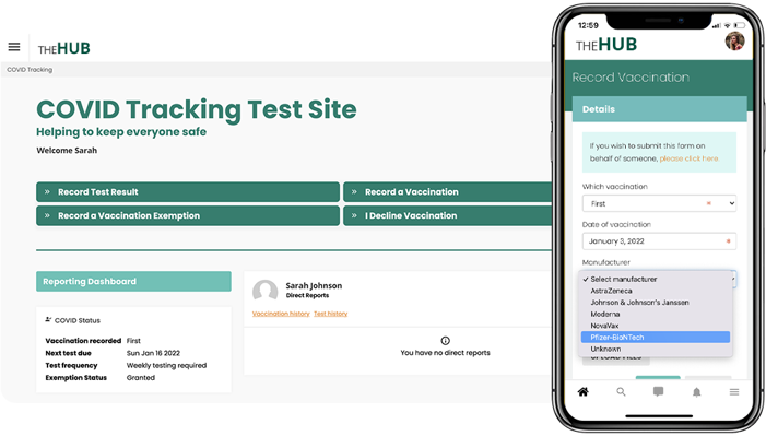 Using a simple online form, employees can enter details of their first and second vaccinations, complete with dates and manufacturer.