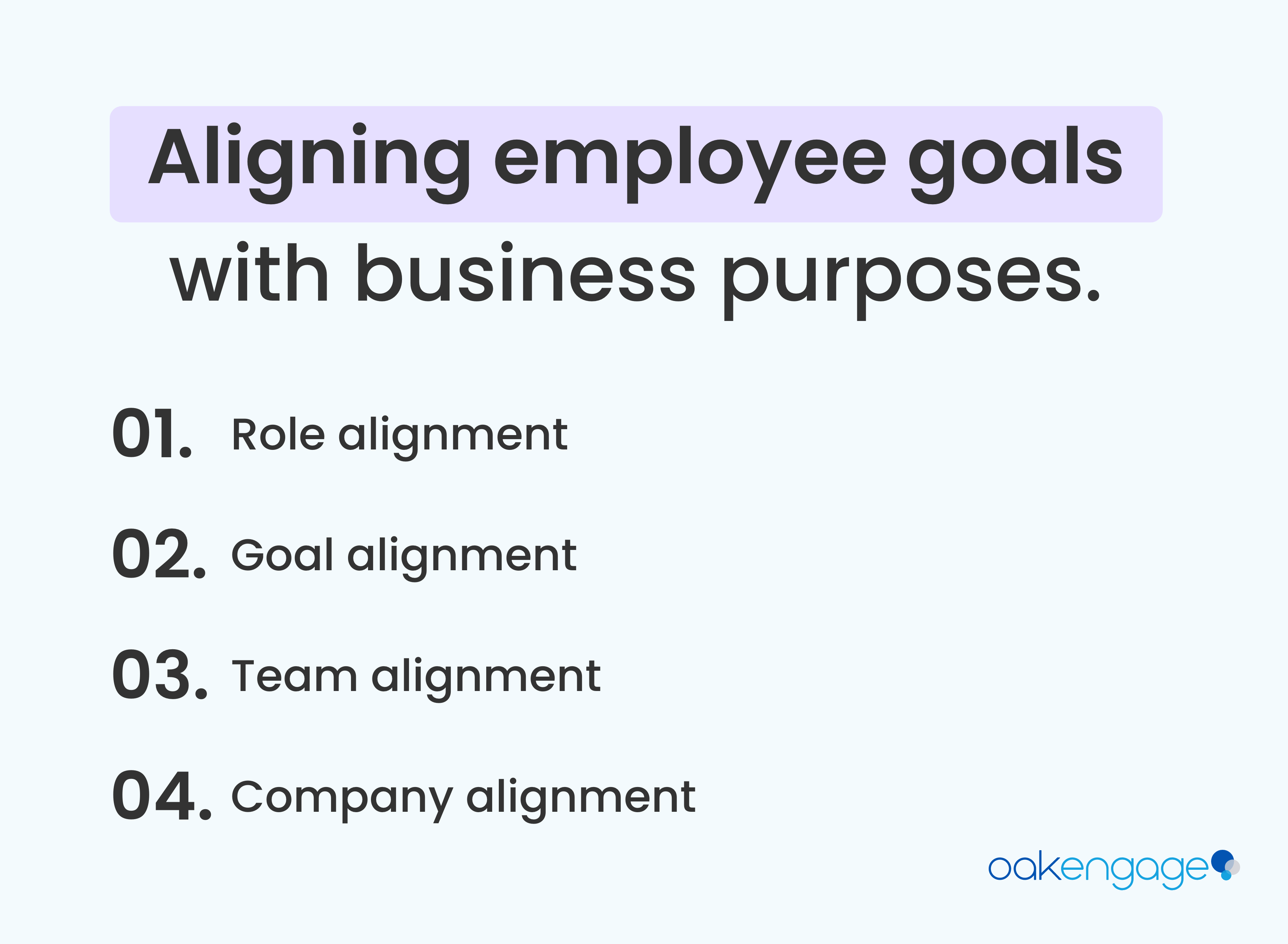 • Employee-goal alignment - To get employees moving in the same direction, make sure their business goals are aligned with personal targets.