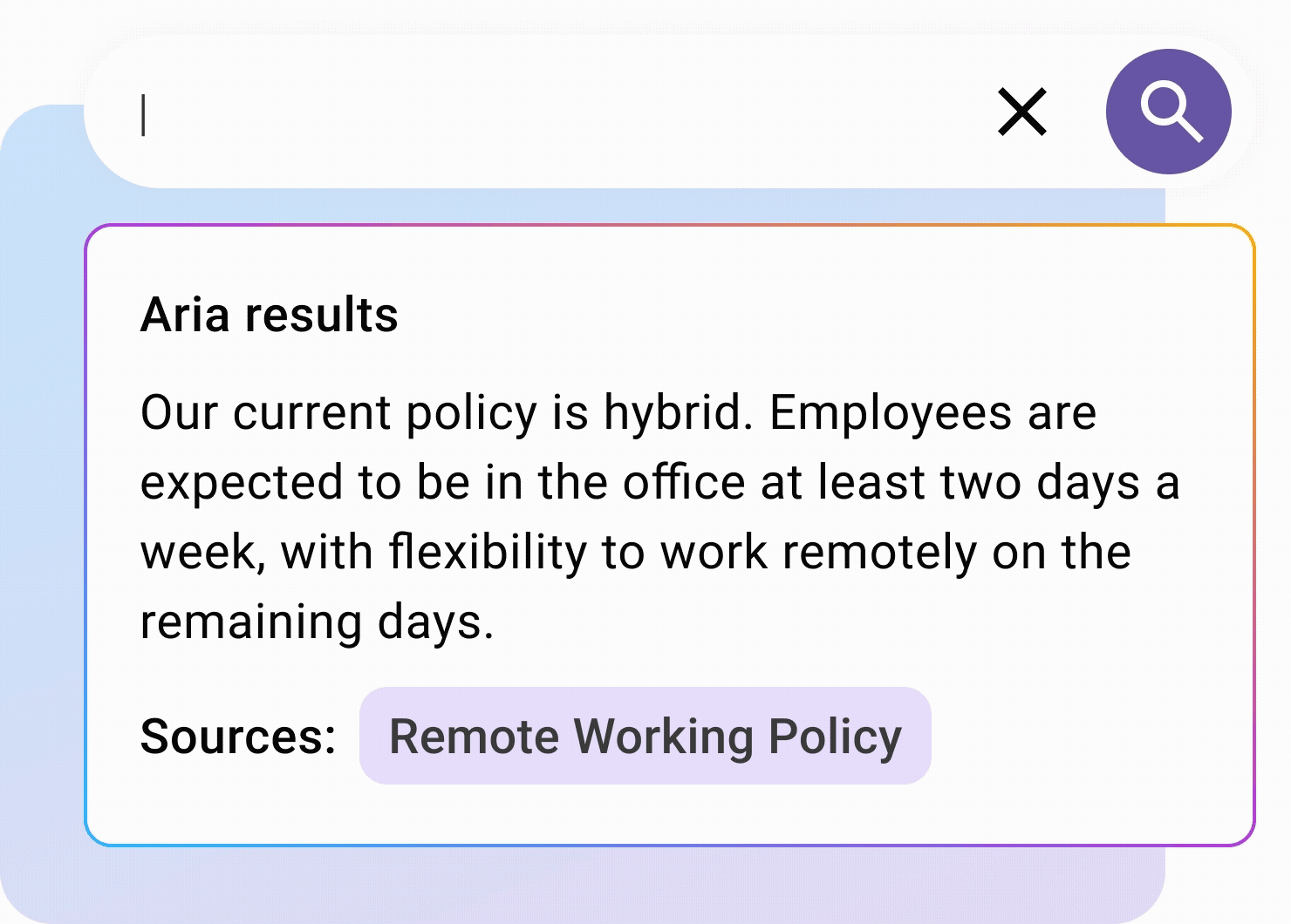 One of the best things your intranet can do for your organisation is give them access to everything they need quickly, which is why AI-powered search is so useful. Not only can your employees find exactly what they need, it gives people the tools to ask questions about policies, documents and work and get immediate answers and overviews.