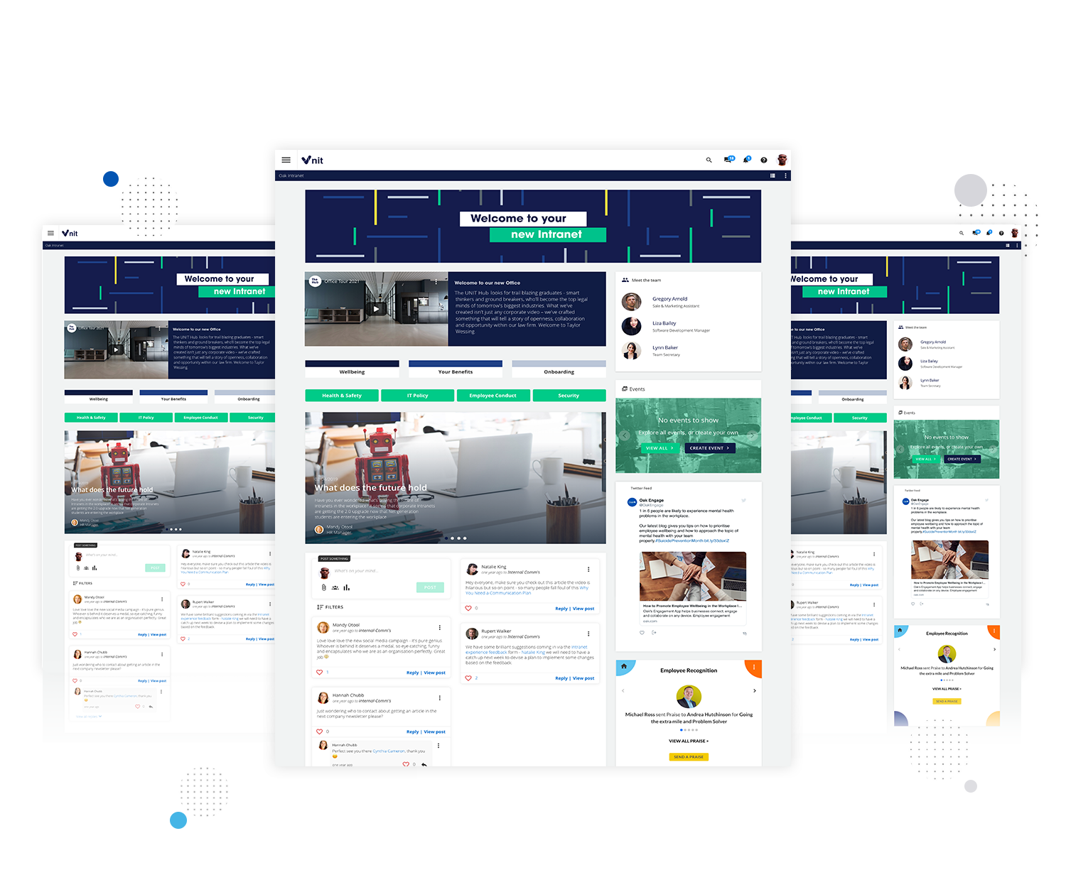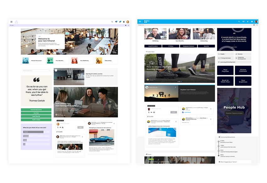As these diverse intranet design examples show, the potential of your company design is unlimited. Design includes a multitude of elements, it can be anything from fonts and colours to features, applets, layout, content and more. When these come together and unite in a strategic way, your company intranet will become unique and remarkable.