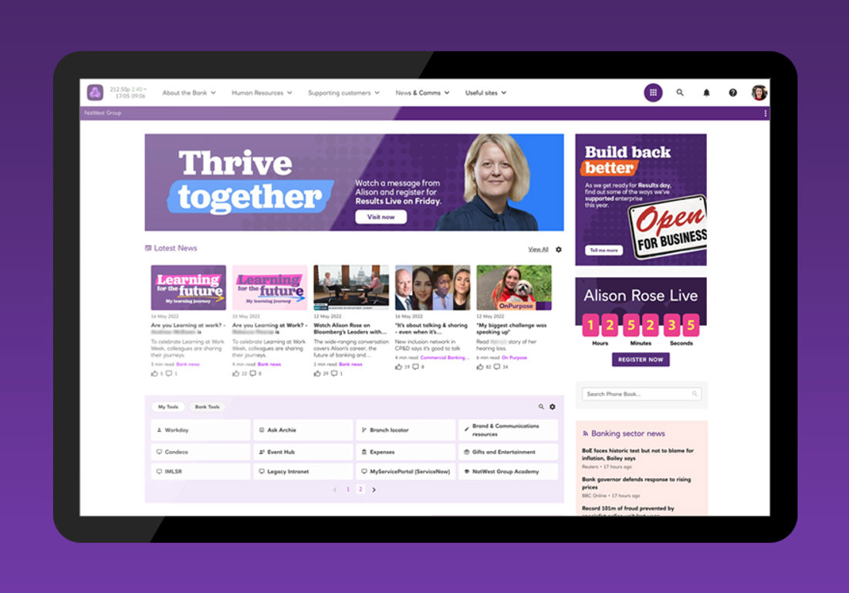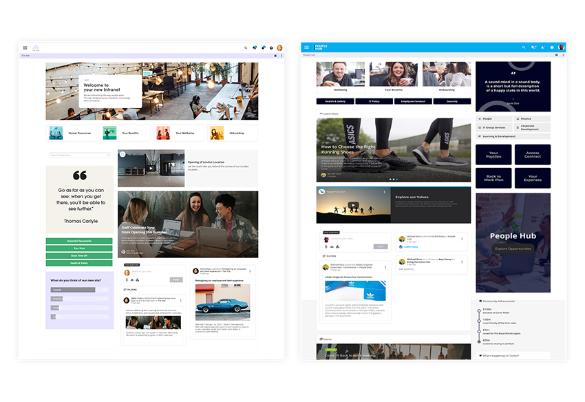 Our design team has expert knowledge who will do the heavy lifting for you to create an engaging site that is suited to your brand. Here are just a few of our examples of engaging intranet homepages created by our wonderful design team. Each one has its own set of unique features.