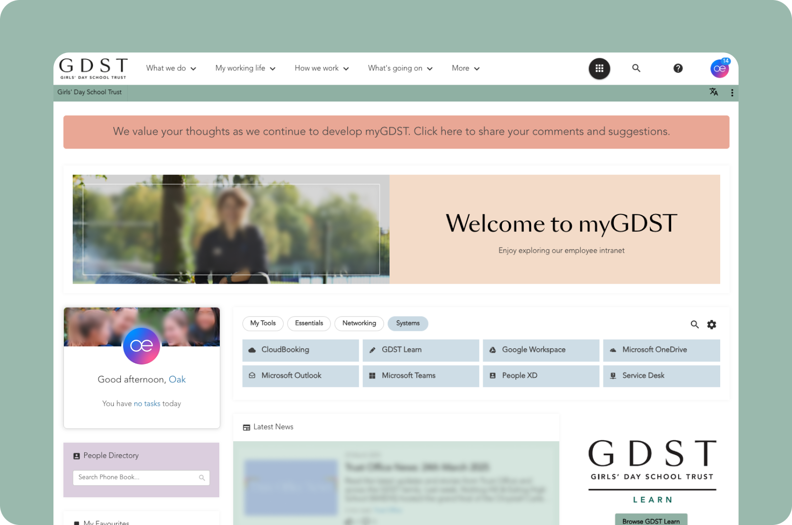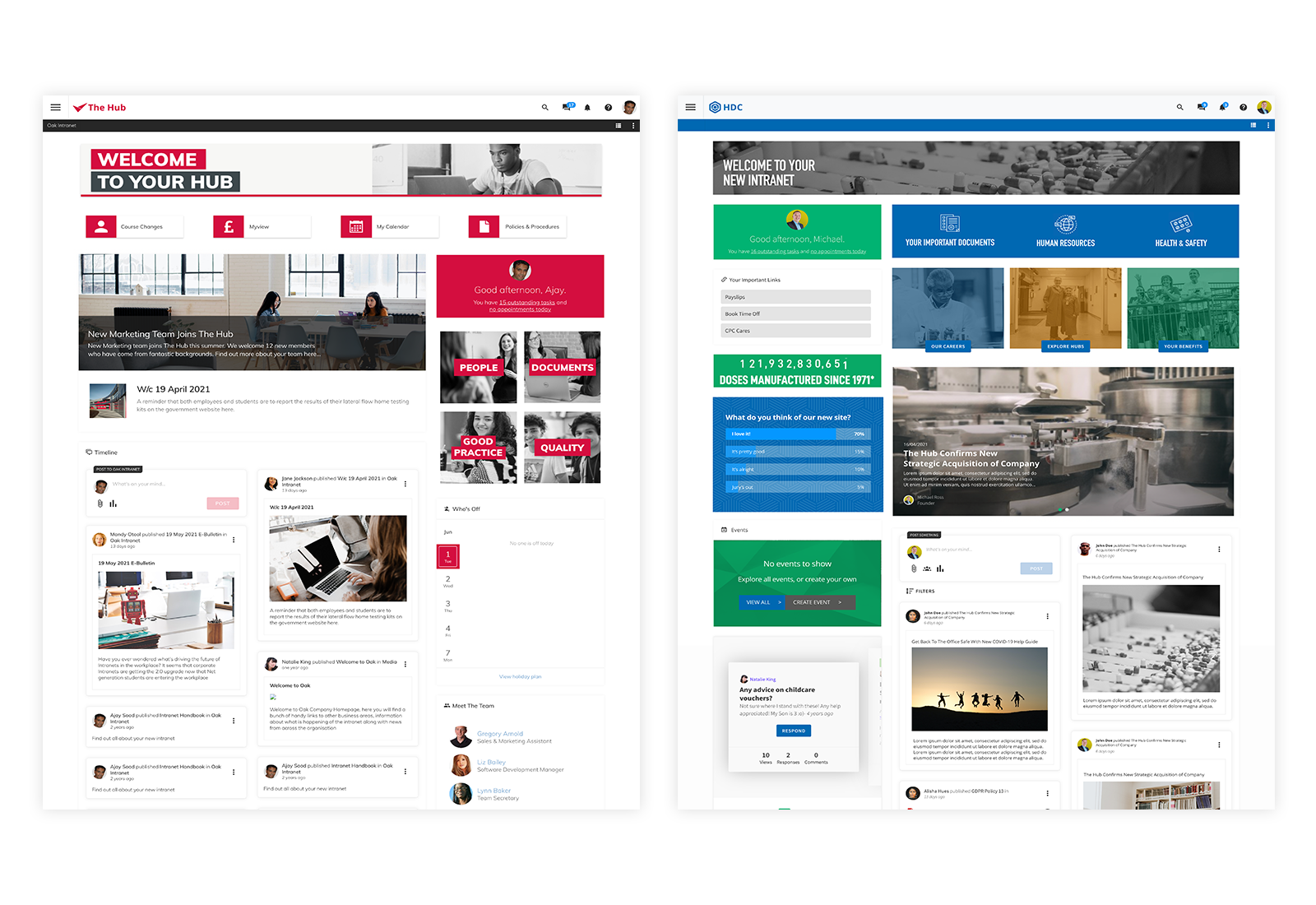 So, where do you start? Thankfully, we know what a good intranet looks like. After all, some of the worlds biggest brands use Oak's intranets every day to engage their employees. Through our intuitive drop and drag design functionality to expert advice from our in- house teams, our customers are able to make intranets that make their intranets good looking and completely immersive.