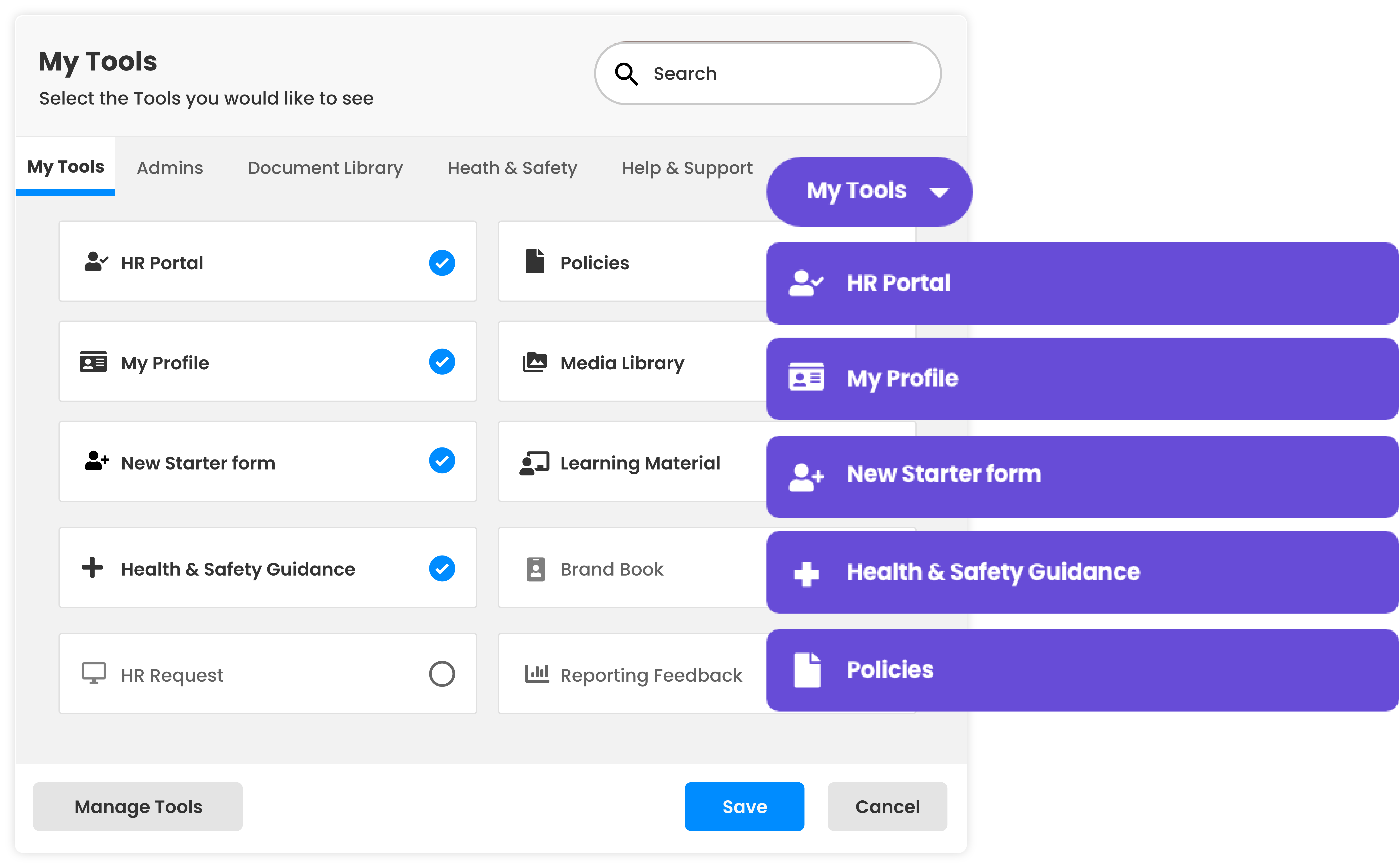 There will be areas on your intranet that will be visited more than others by your employees every day. To save time and increase efficiency, you can provide your workforce with quick links on the homepage to navigate them to their most used pages or content.