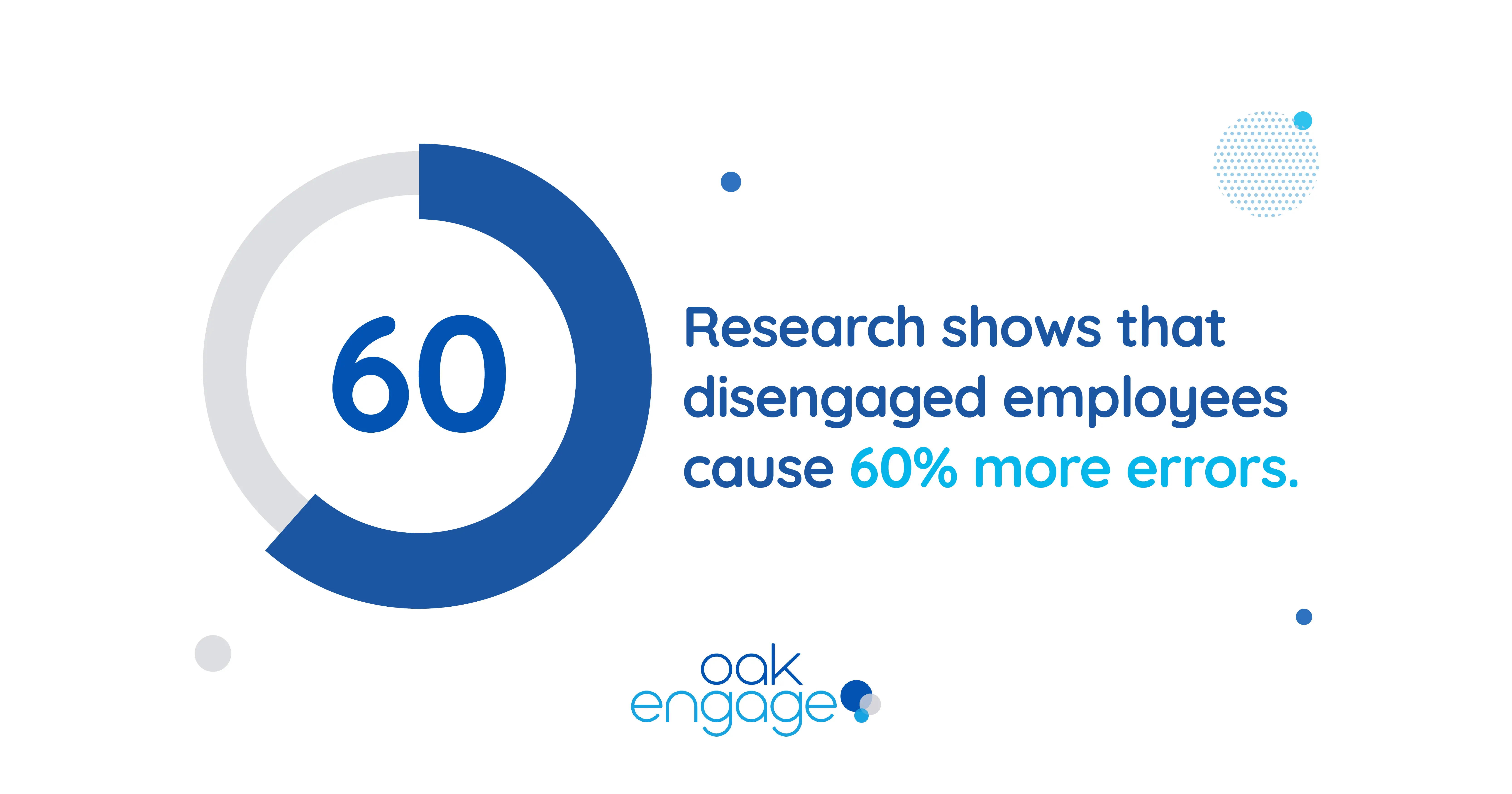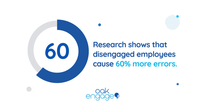Research shows that disengaged employees are less likely to work hard, feel motivated, or meet expectations for their role. In fact they cause 60% more errors and defects in work performance.