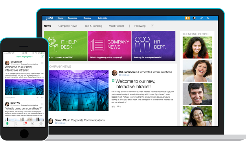 Jive provides a gateway to everything employees need to get their jobs done. It’s a platform that provides company communication, team collaboration, employee engagement and more.