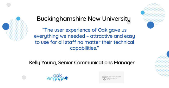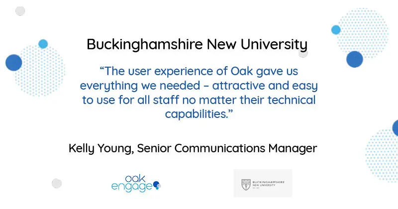 Buckinghamshire New University: Nothing beats the benefits of face to face communication. Instant messaging is the next best thing. Before their Oak Intranet solution, BNU relied on distributing internal comms through email.