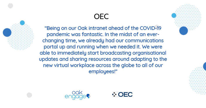 OEC: The beauty of a digital world means we can find everything we want at the click of a button. The same should be said when it comes to searching for things in your workspace. With Oak, OEC were able to share single documents for all employees to a centralised location.