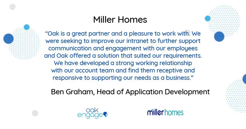 Having an intranet with intuitive capabilities lends to creating this type of content. With Oak Miller homes improved their communication. Staff were updated through news articles, notices and interactive homepages.