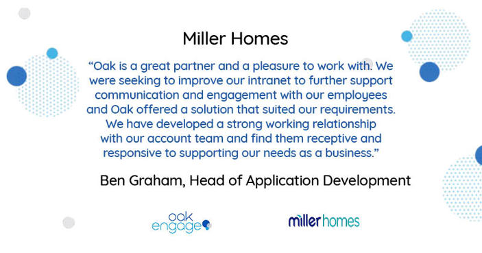 Miller Homes: Social media feeds recognise the importance of visual content. Storytelling and a social intranet is no different. Miller homes are a company who rely on visually showcasing projects.