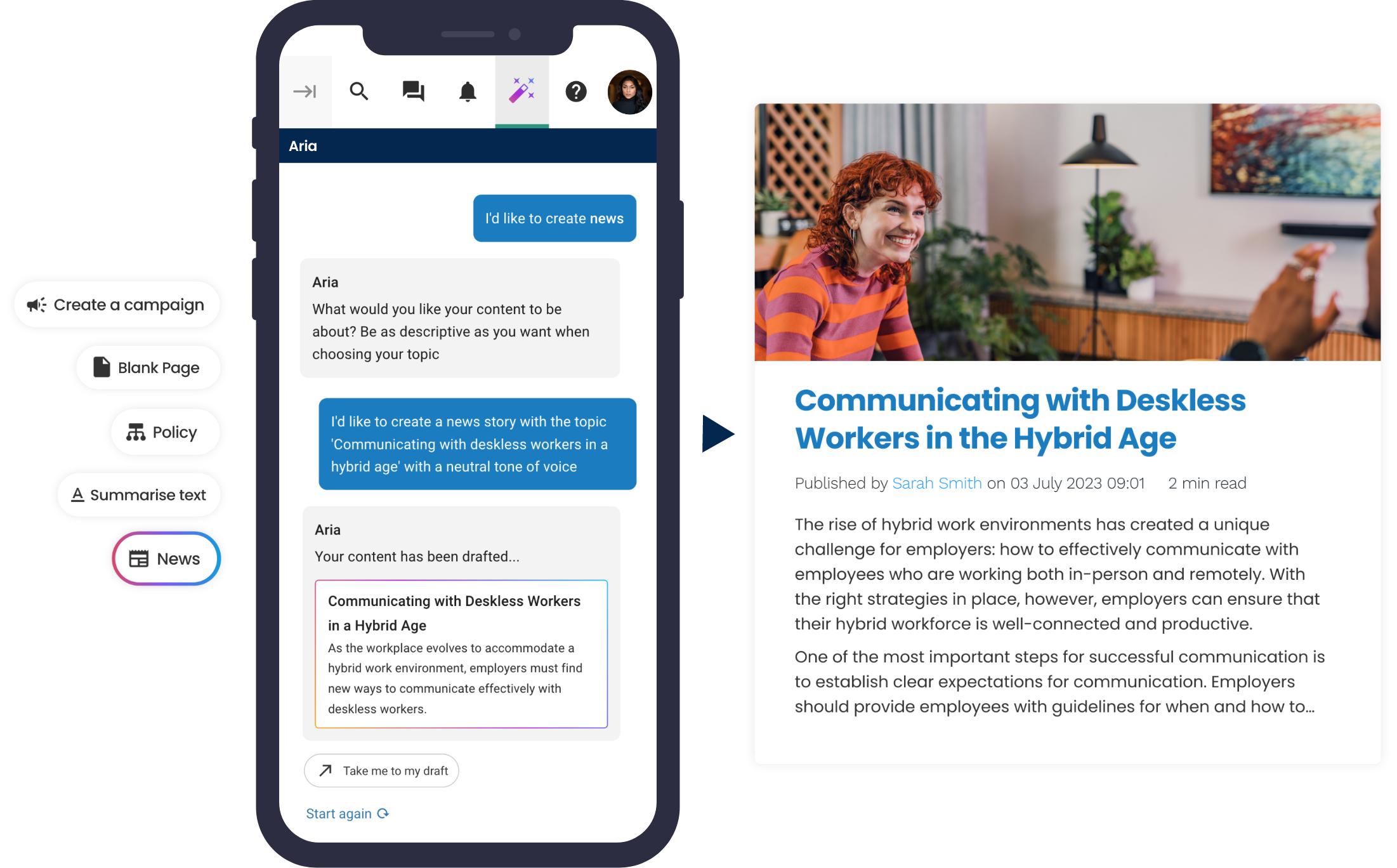 Authenticity in internal communication is in high demand. Gallagher states ‘authenticity is what employees truly want.’ They’re increasingly looking for genuine and transparent experiences - something that makes them feel good about their place of work. How can this be achieved with AI and will the progress of authenticity in internal comms be threatened? Internal communicators and HR professionals need to find a balance between AI generated content with a commitment to storytelling and tone of voice. They need to clearly define what tasks they will depend on for AI and which they won’t.