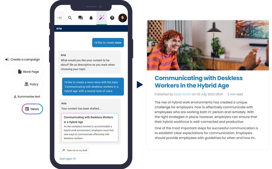 You are probably sick of hearing about AI. A key trend of 2023, but should not be overlooked for 2024. ChatGPT hit 100 million monthly active users in 2023, making it the fastest-growing application in history. Vendors (including Oak and the launch of Aria) have worked quickly to build generative AI into their products to save internal communicators and HR professionals valuable time. Other uses of AI to emerge in 2023 are more use of AI generating content that are targeted at different audience groups on different channels, AI summarisations, AI search and AI-powered analytics.