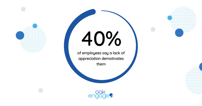 40% of workers said a lack of recognition was the main reason for demotivation. Oak’s employee recognition functionality allows leadership to showcase appreciation through social feeds.