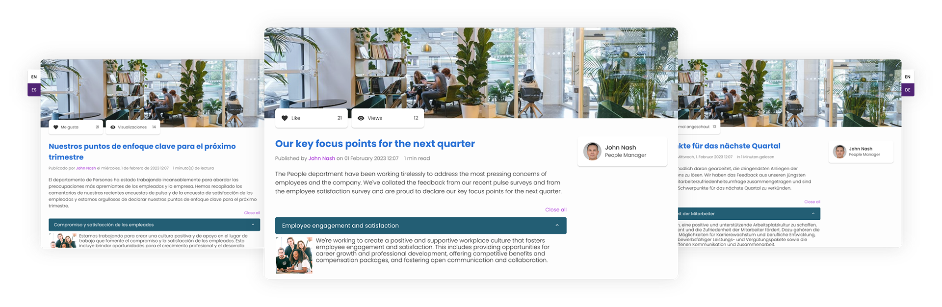 We facilitate highly improved communication and employee engagement rates in small businesses - period. We offer a suite of features including AI curated content feeds, Auto Translations, social recognition tools, Analytics and much more. We empower communicators to create a collaborative environment, encouraging employees to engage, share ideas, and contribute.